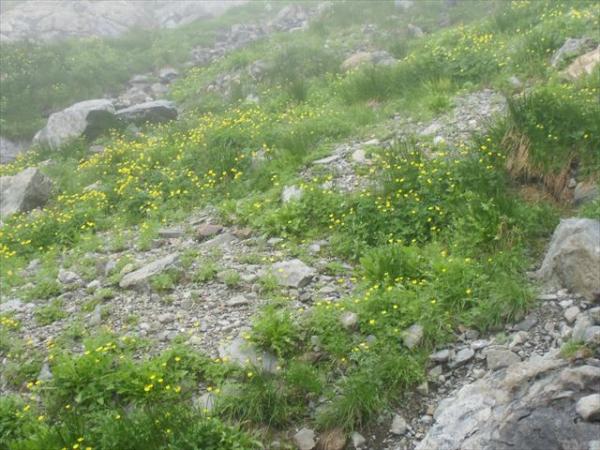 1時間半くらいで本当に雪渓は終わり、岩の多い登山道へ。