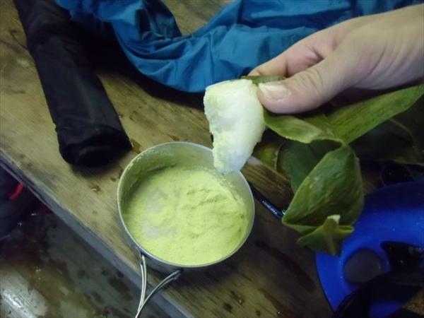 白馬大池山荘にて。登山者にきなこ餅を頂く。