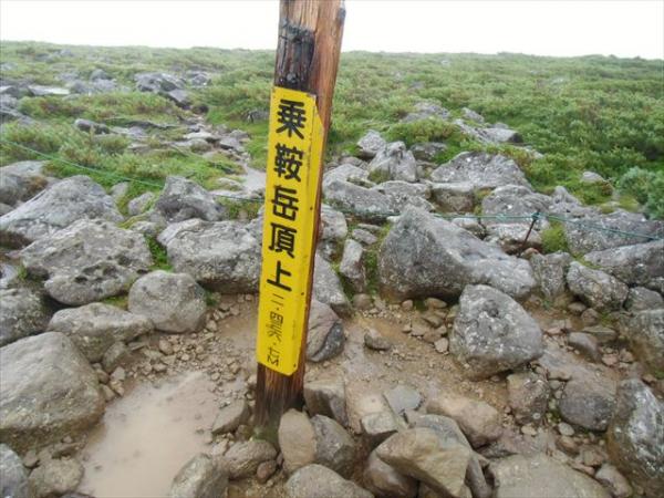 テント荷物と雪渓の疲れで、多少腰が痛くなりつつも「ガンバレ!」の岩に書かれた文字に励まされ、頂上宿舎テント場へ着。
