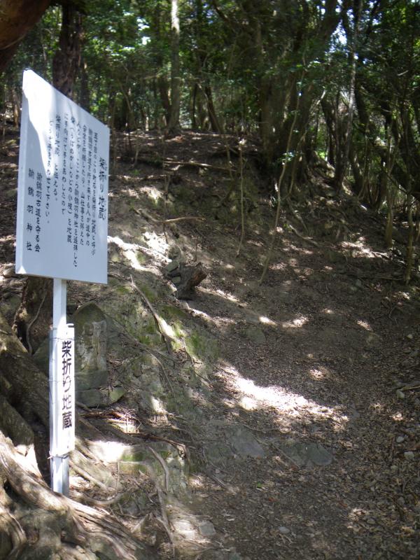 - 黒岩灘11:15-登山口11:21-鹿ネット11:24-柴折り地蔵11:42-諭鶴羽神社11:56-諭鶴羽山(12:07-12:15)-近畿自然歩道分岐12:29-鹿ネット12:53-黒岩灘13:21