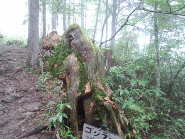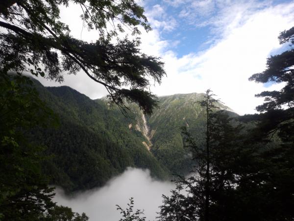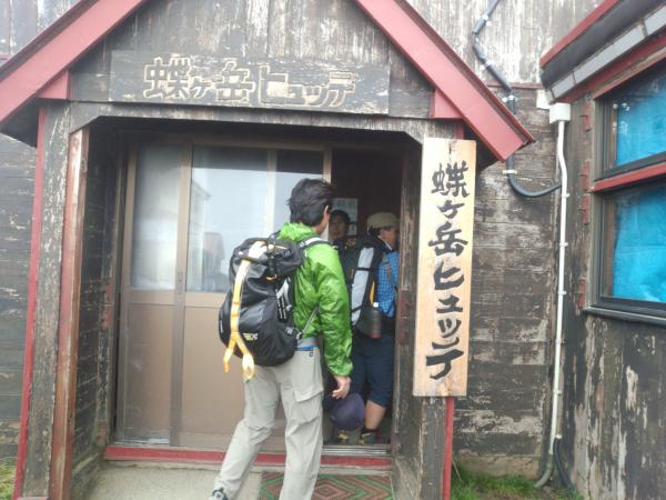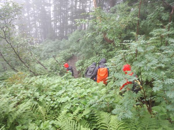おじさん達と1泊で蝶ヶ岳に行ってきました。晴れの天気予報も普段の行いの悪さか、雨の山行になりました。稜線に上がっても、ガスで何も見えず・・・翌日も雨風強く、頂上をあきらめて下山。