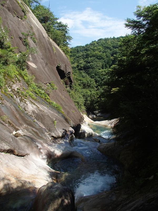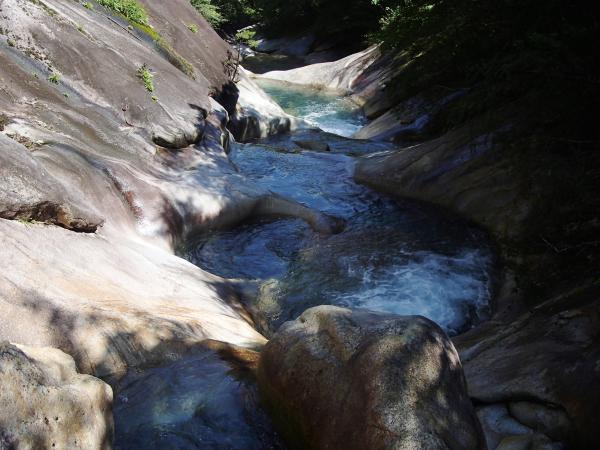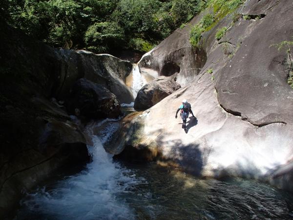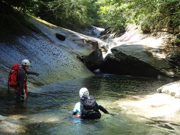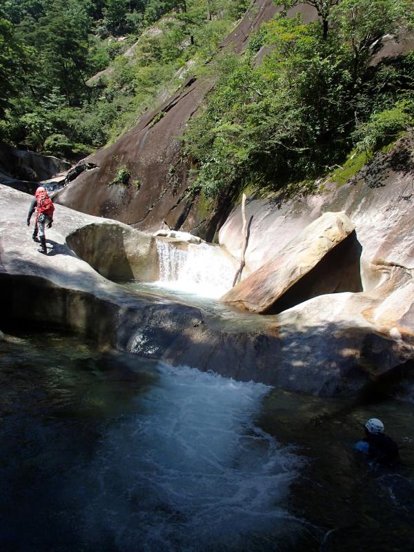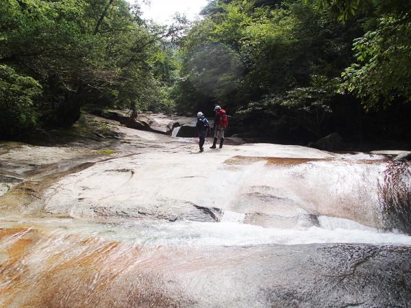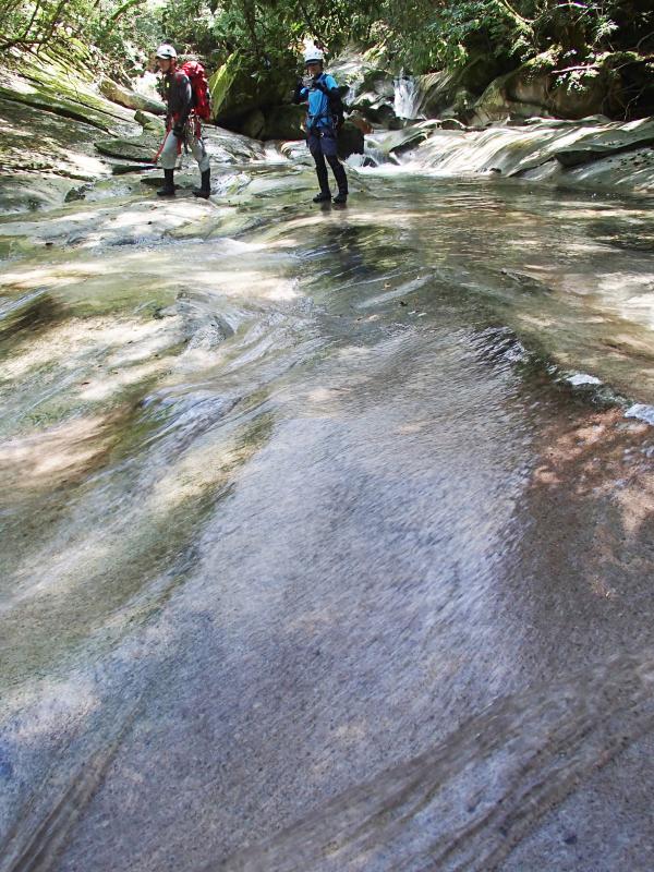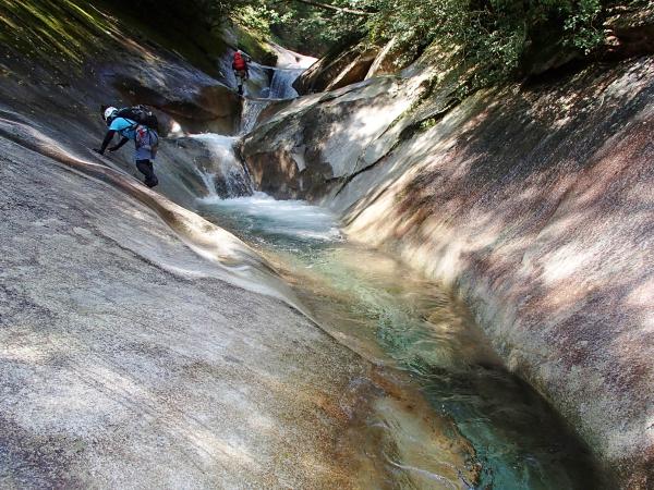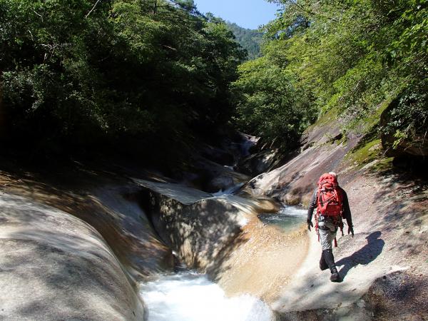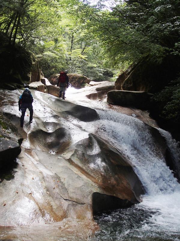 - 花崗岩の一枚岩が多く、沢靴はフェルトソールよりもラバーソールの方が滑りにくく歩きやすいでしょう。