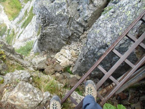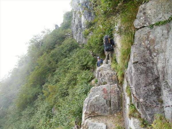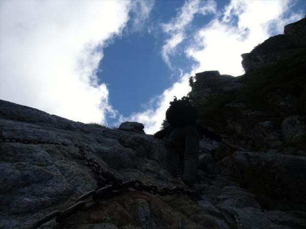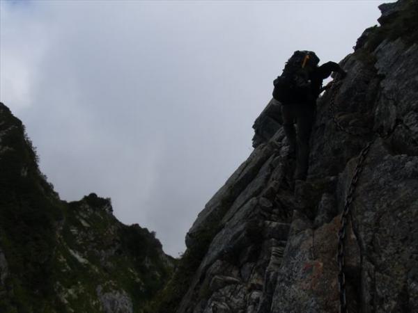 いきなり鎖!直登!高度感あり!踏み外したら終わりな、とてもエキサイティングキレット。荷物が大きいと重心が振られ踏ん張るので少しきついですね。