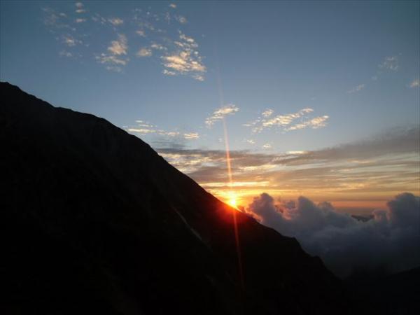月の明かりがまだはっきりしている4時過ぎご来光を見るため、五竜岳山頂へ出発。