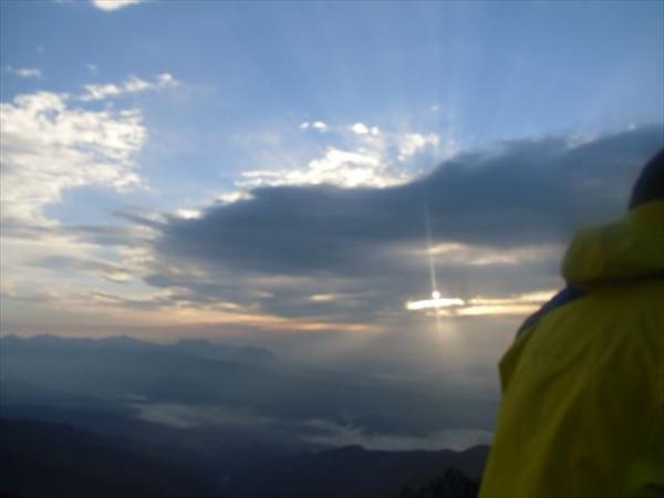 はて、山頂について「太陽昇ってこーい!」という意気込み虚しく日の出方面に雲が多くご来光はしっかりみれませんでした。