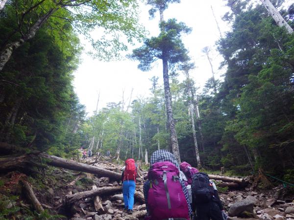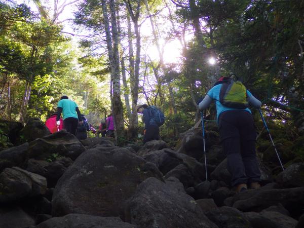 亀甲池から北横岳までは急坂が続きます。がんばって登りましょう!