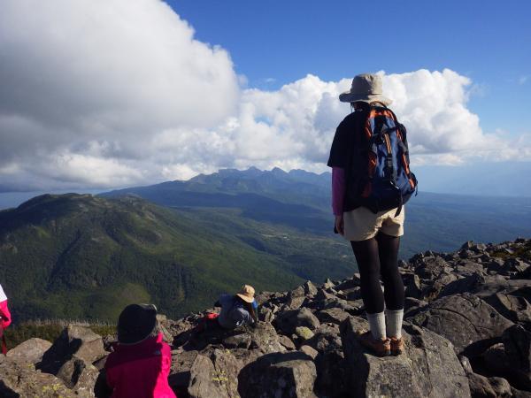 岩岩の道にちょっと苦戦しつつも辿り着いた蓼科山の頂上はとても広く、最高の展望でした!
