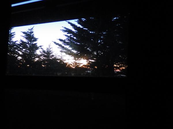 2日目も朝から快晴!小屋の窓から朝日に照らされていく山が見えました。