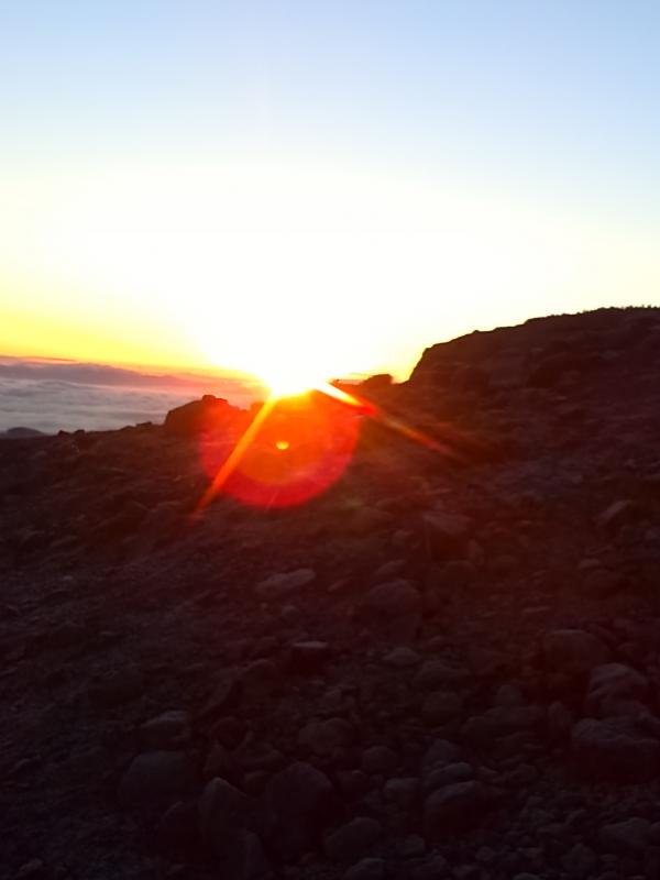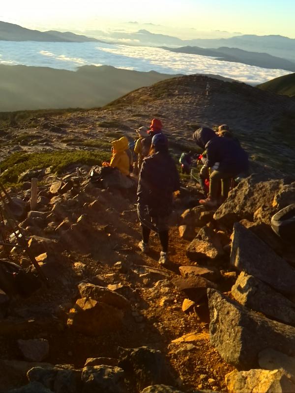 家族の体力にあわわせて標準コースタイムの1.5倍くらいの時間がかかりながらの山行でしたが、きれいなご来光が見え、剣ヶ峰の頂上でお参りができ、下山するまでまで天候にめぐまれ、まわりの3,000m級の山々のパノラマをながめながら楽しいひと時が過ごせました。