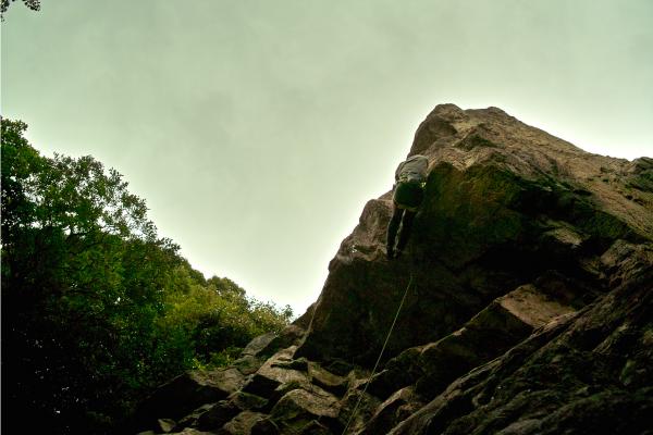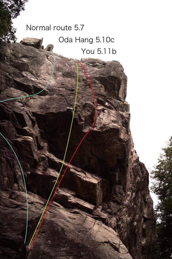 岩場は私有地で、ボルト、ハーケンなどの設置が禁止されており、ナチュラルプロテクションで、支点作るなど、工夫が必要。