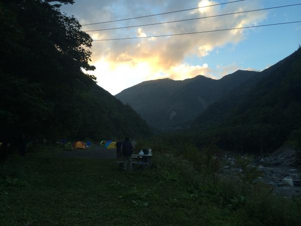 13日に広河原のテント場に着いたのが17時過ぎでした。