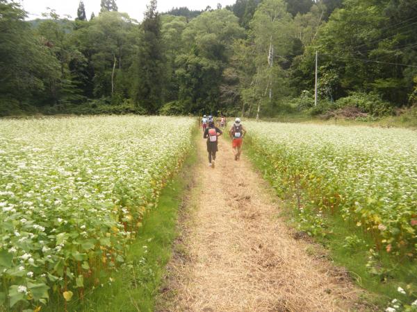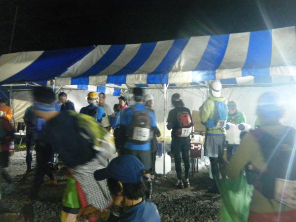 この大会はエイドも充実しており、バナナやレモンのフルーツ類。チップスターや梅干しの塩分系。お粥やしゃり玉などの飯類。味噌汁やコンソメスープの温かい飲み物などなど選択肢も多く、状態によって不自由なく補給を受けられます。中には限定サービスで笹寿司や蕎麦も食べられました。これらエイドに立ち寄るのも、長い距離を走る上では楽しみのひとつになっていました。