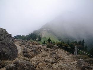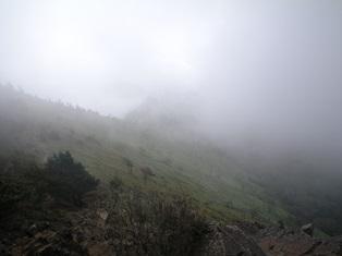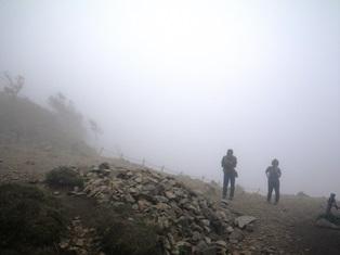 山頂で約2050mあります。当日は半そでTシャツの上に長袖Tシャツ稜線ではウィンドブレーカーとグローブを着用しました。フリースやダウンジャケットが無いと休憩のときなどはしんどいでしょう。今回はガスにまかれて視界が悪く、たのしみにしていた富士山を見ることはできませんでしたが池袋で一緒に働いていたスタッフと楽しい時間を過ごすことが出来ました。