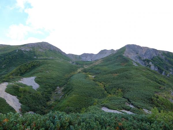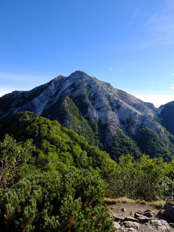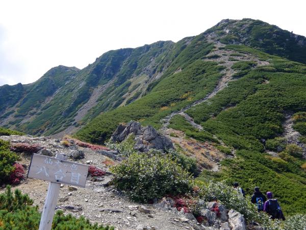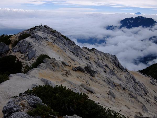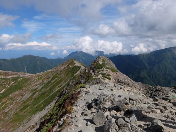 森林限界を越えると、小仙丈カールや藪沢カールを眺めながら登る稜線登山道になります。
