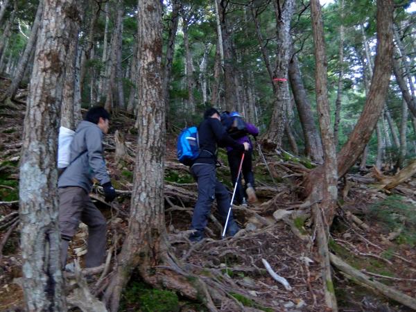 北沢峠から駒津峰までは、森の中を登っていきます。