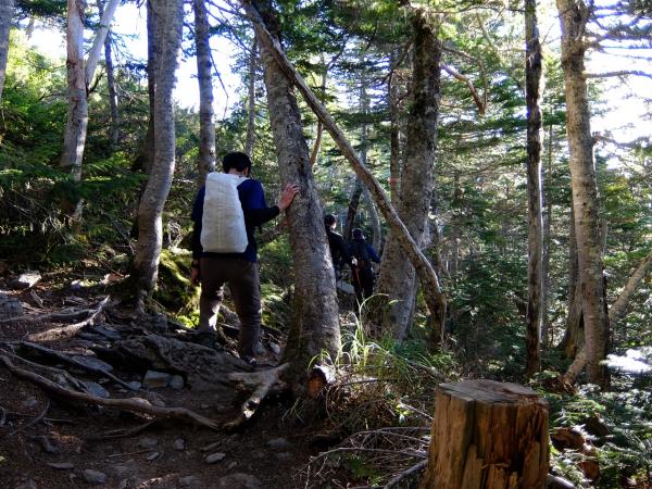2日目の甲斐駒ケ岳は、北沢峠から駒津峰までは1日目の森林限界までと同様の森の中を登ることになります。