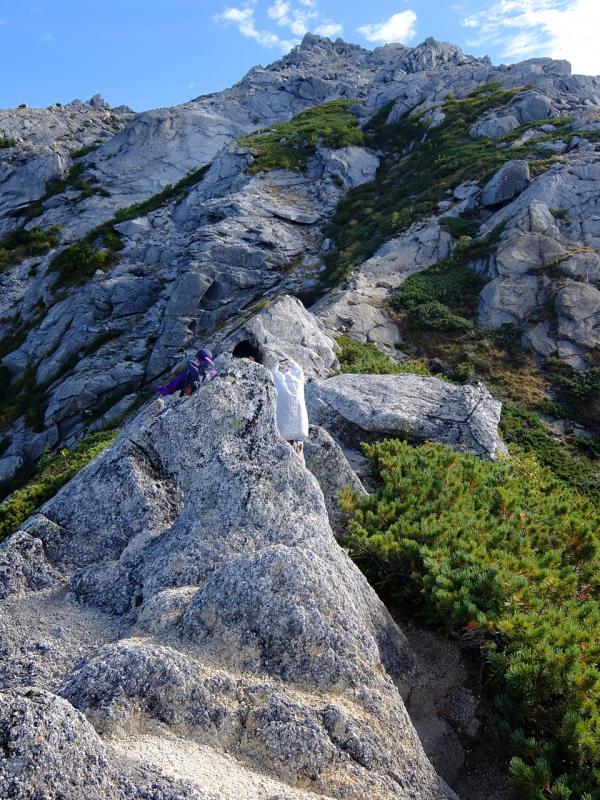 駒津峰から先は甲斐駒ケ岳名物の岩登りエリアとなります。