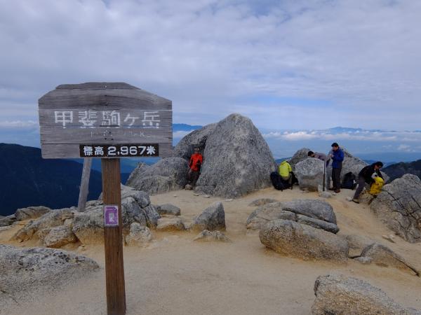北沢峠(長衛小屋 テント場)→(100分)→双児山→(30分)→駒津峰→(20分)→六万石→(60分)→甲斐駒ケ岳→(50分)→六万石→(20分)→駒津峰→(50分)→仙水峠→(30分)→仙水小屋→(20分)→北沢峠(長衛小屋 テント場)