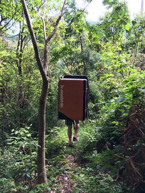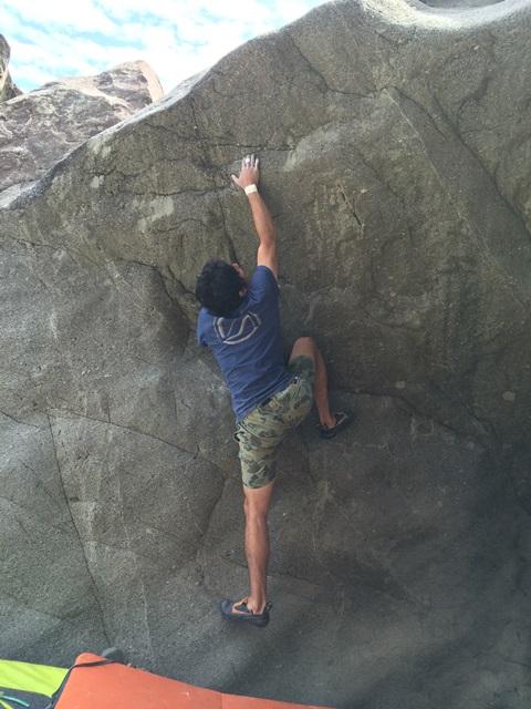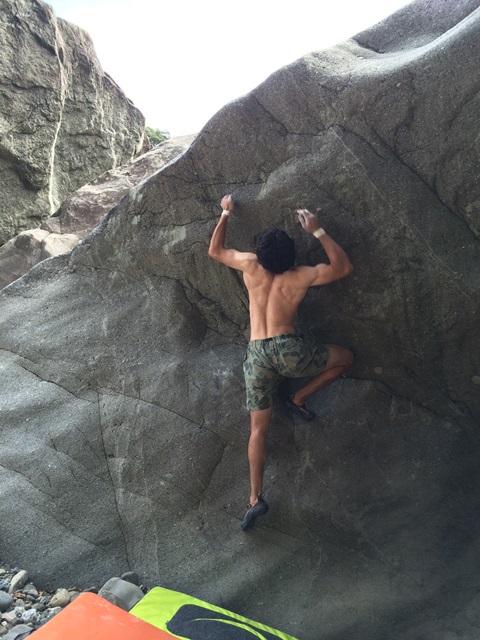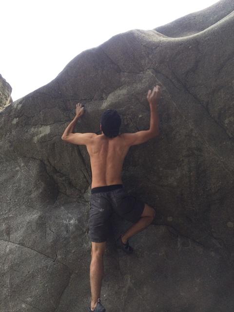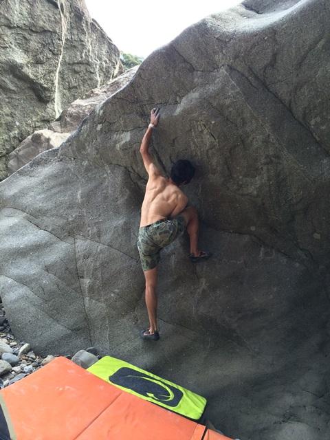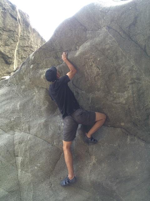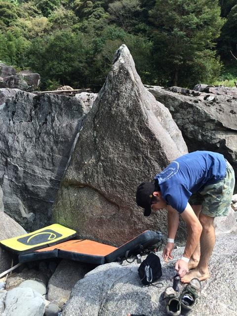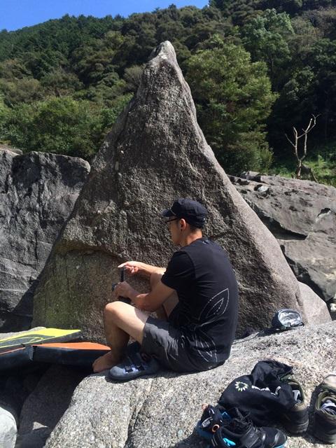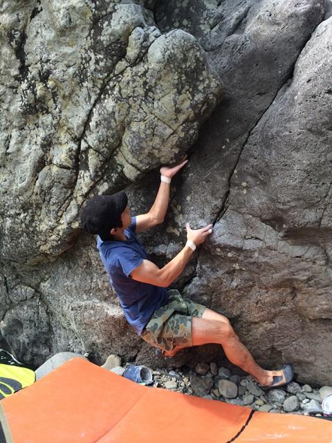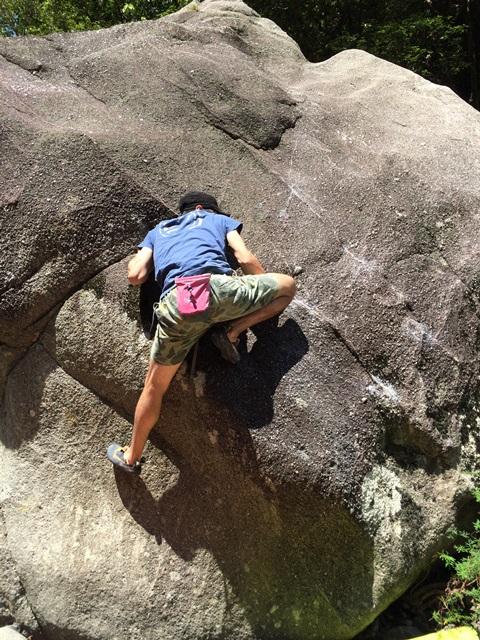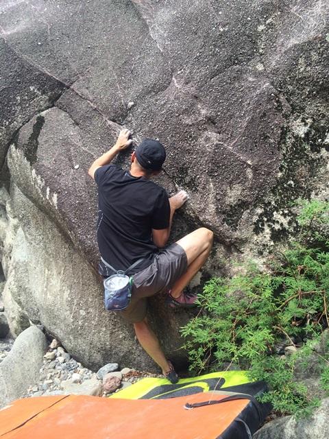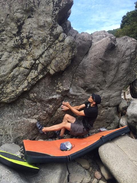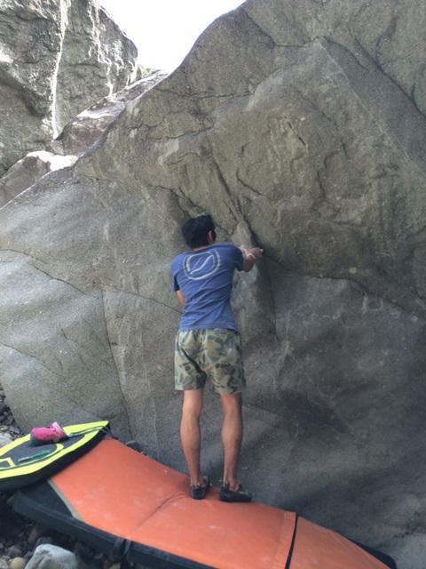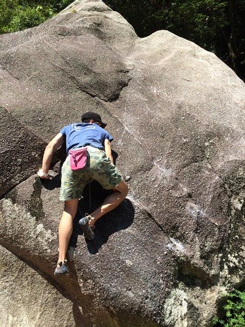 暑い中スラブ登るのは、チャレンジングですね。もちろんチョークバッグ付けて登ります。そして退けられました。もっと寒い日にまたやります。