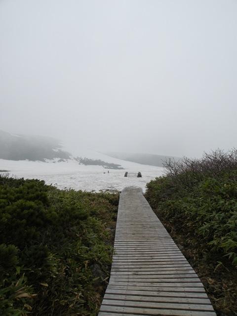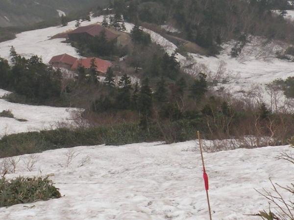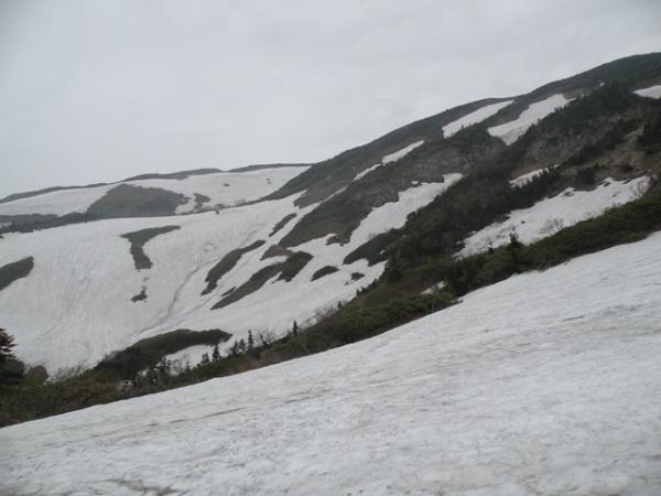 市ノ瀬-別当出合間開通3日目。天候が怪しかったので、出発が遅くなりました。雪道でペースが上がらず、弥陀ヶ原でガスによる視界不良。天候も心配で時間切れにより今回はピークハントしませんでした。その分、ゆっくり景色や花や新緑を楽しみながらの下山。広島から高速道路を使って白山に来られた2人連れ、スキーを楽しみに来た人、甚之助避難小屋を管理している人たち、道路を管理しているひとたち、地元の人たちなどなど道々会いました。白山の新緑、花は最高でした。雪道のアップダウンは、少し緊張感もありますが楽しかった。今度は、晴れ確実の日に来てちゃんとピークハントします。でもたまには、山頂に行かない山行もありですね。