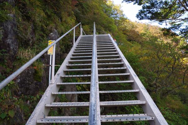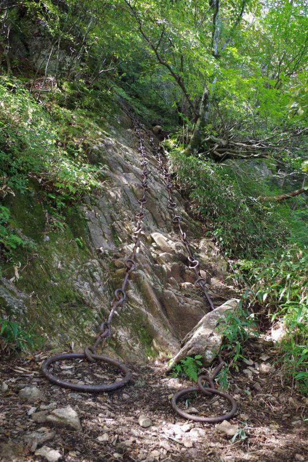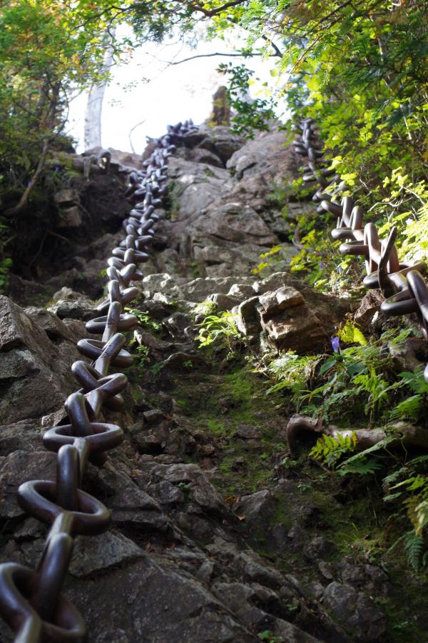 鎖場は滑りやすく、鎖をしっかり持たないといけません、鎖に足踏みも付いていて助かります