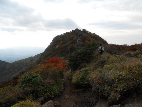 牧ノ戸峠からの定番コース。紅葉には1週間程度早かったですが、天気も良く、