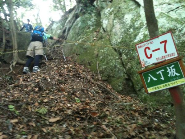 - ほとんどなだらかな所はなく、落ち葉や木の根、岩場など、晴れていても足場は不安定。