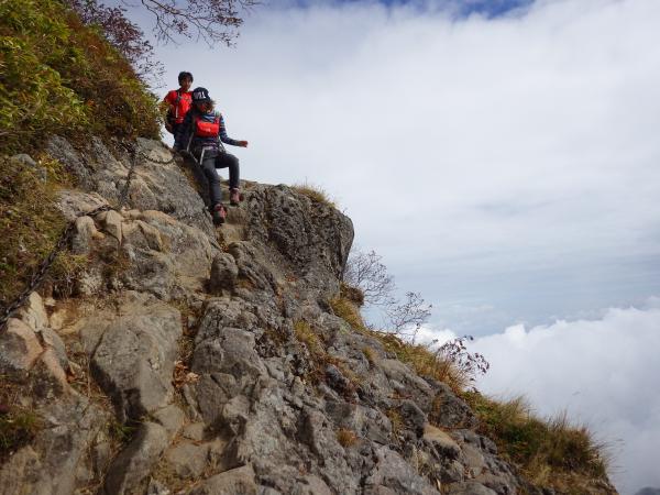 妙高山から燕温泉への下りに鎖場があります。高度感があるので落ち着いて。