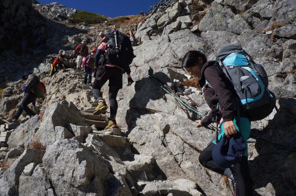 - ・千畳敷~乗越浄土まで石の階段・ガレ場の登りです。整備もされていますが、急坂なので転倒する方も見られました。狭いので混雑時にはすれ違い注意です。