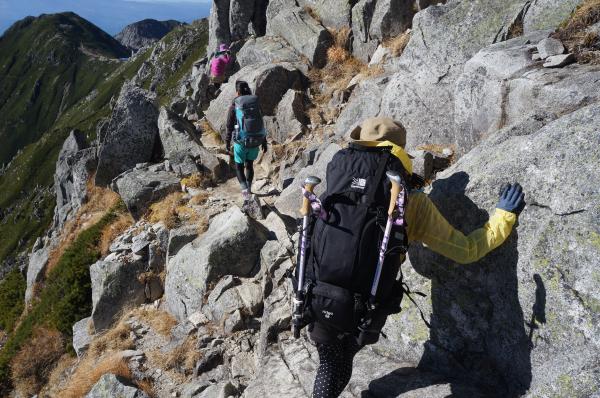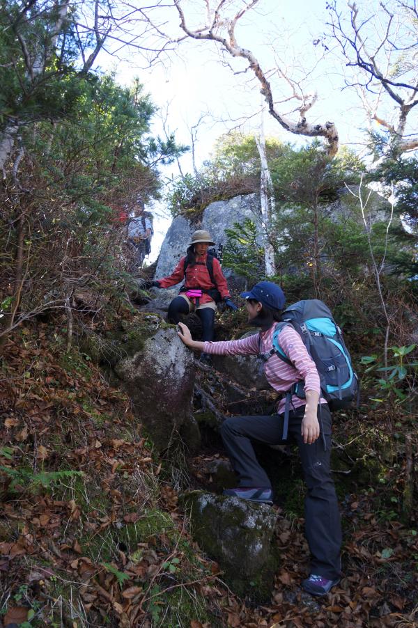 ・中岳の巻き道コースは狭い岩場なので、慎重に。悪天候時は無理な通過はおすすめしません。