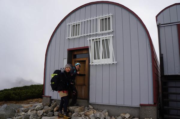 天候・時間的にも厳しくなってしまったので、檜尾避難小屋にお世話になることに。きれいな避難小屋で、緊急用にシュラフ・マットも10人分ほどありました。とてもありがたいです。