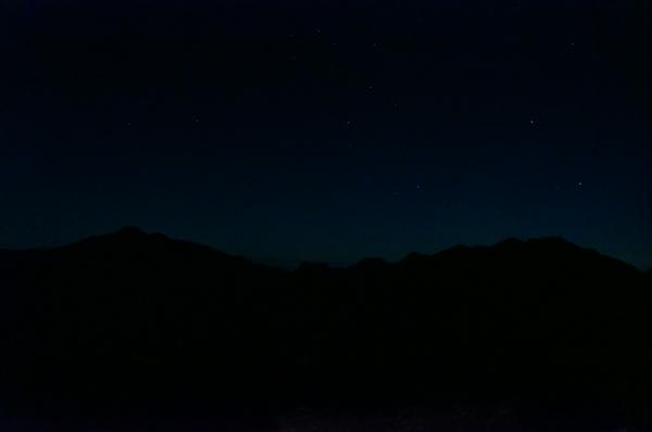 夜になると雲も晴れ、目指したかった空木岳までの稜線も月夜に照らされていました。