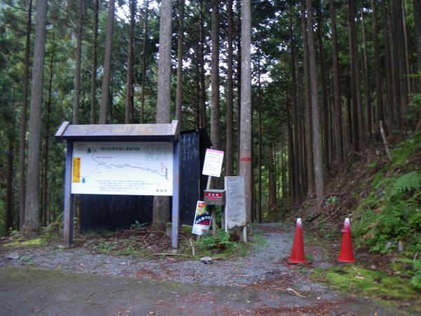 ①宮の谷林道終点の登山口には数台駐車スペースがある