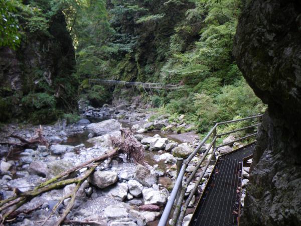 ③宮の谷コースは川沿いに道がつけられ梯子や鉄橋がある