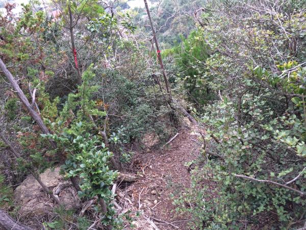 観音山~鷲林寺のパノラマコースは滑りやすく注意が必要です。また、赤テープ目印が途中で出てきますが、有刺鉄線や藪漕ぎと危険なコースになりますので間違ってはいらないようにしましょう。