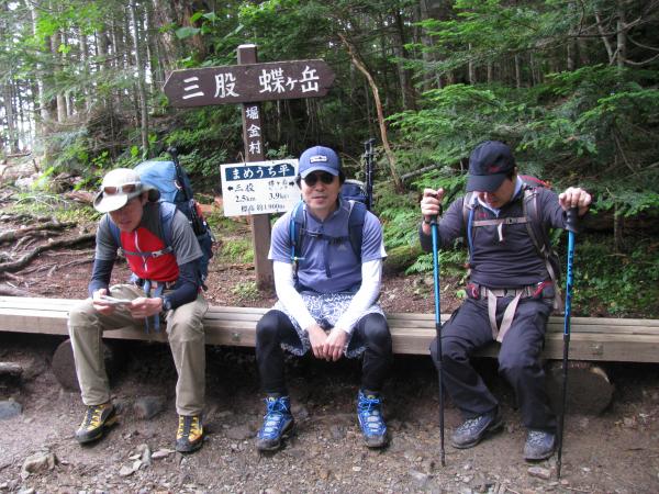 - 三股駐車場(120分)まめうち平(120分)大滝山分岐(30分)蝶ヶ岳ヒュッテ