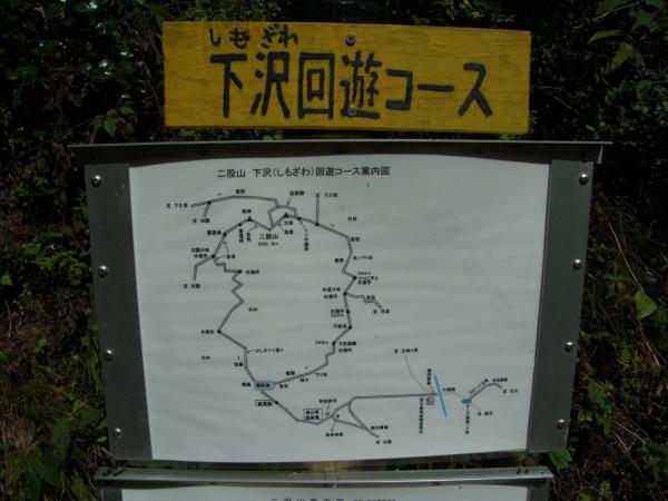 - 下沢集落駐車場(5分)回遊コース起点(60分)展望台(5分)二股山南峰(15分)二股山北峰