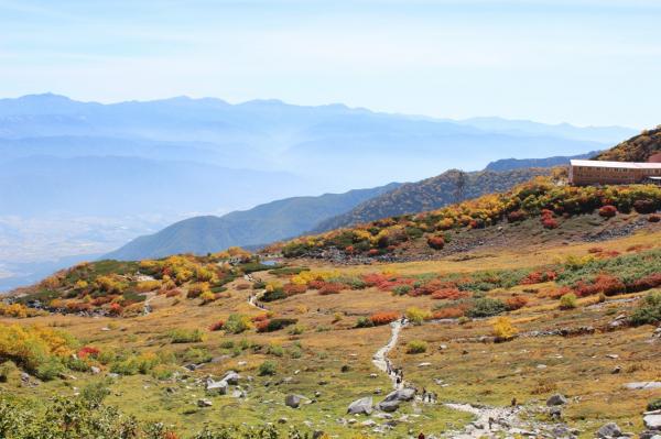 平日の10時頃の千畳敷駅を出発でしたが、紅葉の見頃だった為か、ロープウェイや千畳敷駅周辺はたくさんの人で賑わっておりました。
