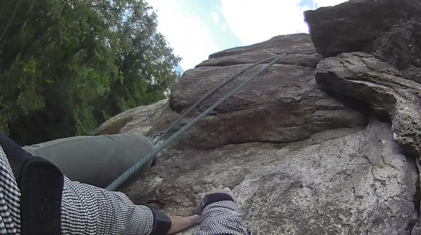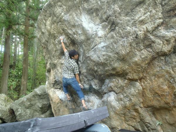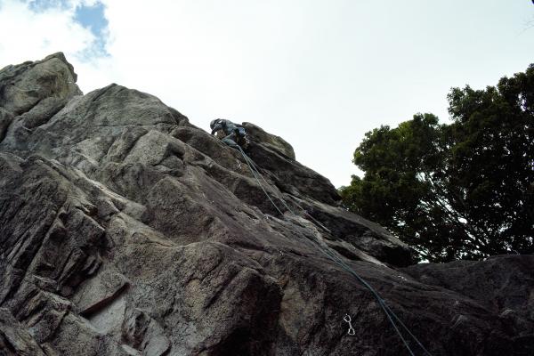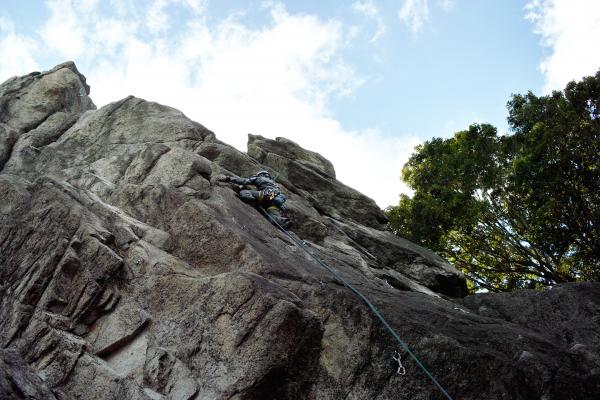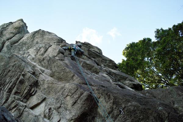 岩場は私有地で、ボルト、ハーケンなどの設置が禁止されており、ナチュラルプロテクションで、支点作るなど、工夫が必要。