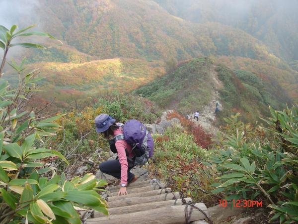 - 荒菅沢からしばらく急な登り。それから笹平まで、ハシゴや岩場が続く。特に下りは注意。
