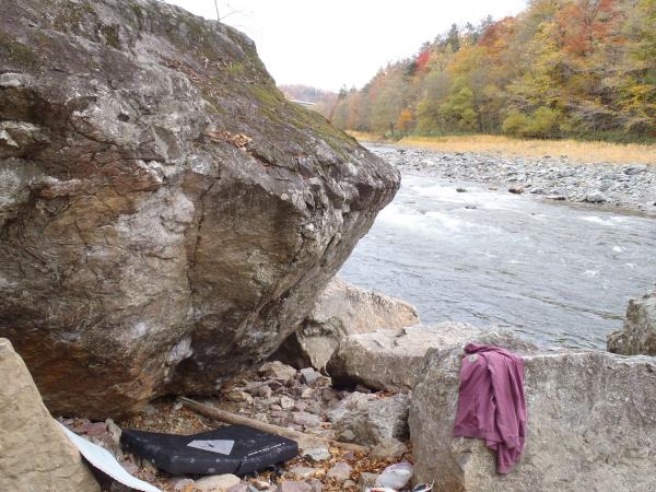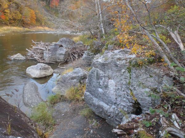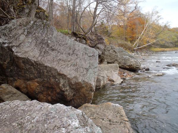 鵡川沿いに点在するボルダーエリアで、赤岩青巌峡の下流にあたります。
