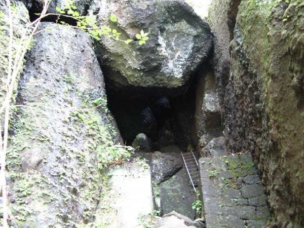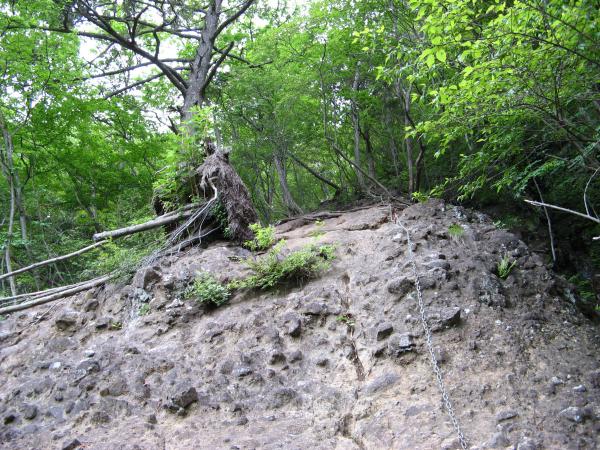 奥の院横の鎖場。第一の難所!長く登りづらい斜面です