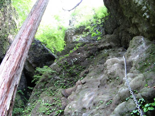 大のぞき後の鎖場。第二の難所!かなりの高度感のなかを下ります