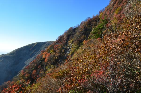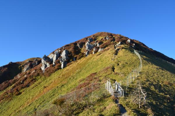 三嶺直下の登りがかなり急なのでバランスを崩して滑落しないよう注意。