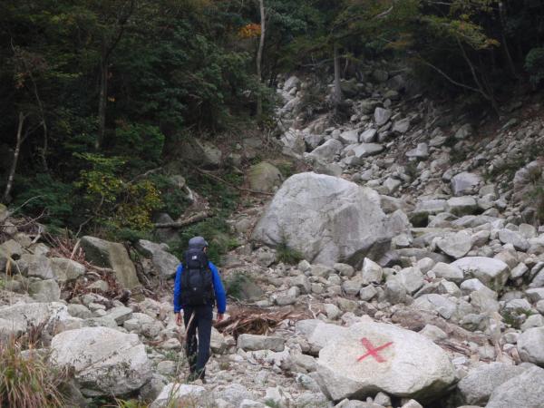 - 裏道P<60M>一壁でクライミング<50M>登山口