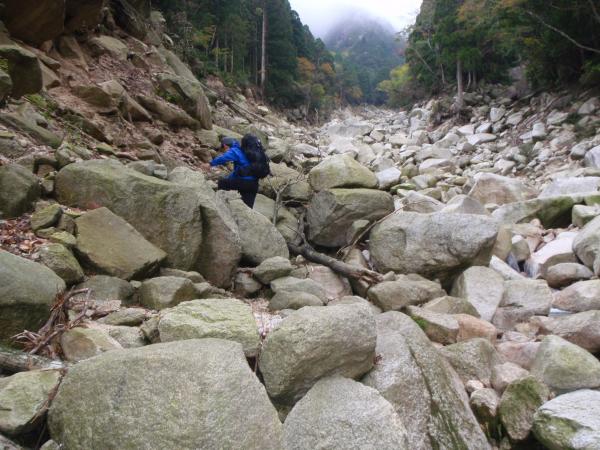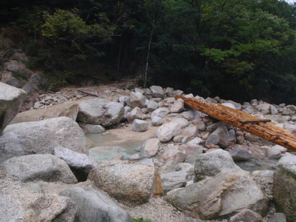 の、丸太橋も付け替えがしてありました、登山道は少し下流に変更されてます