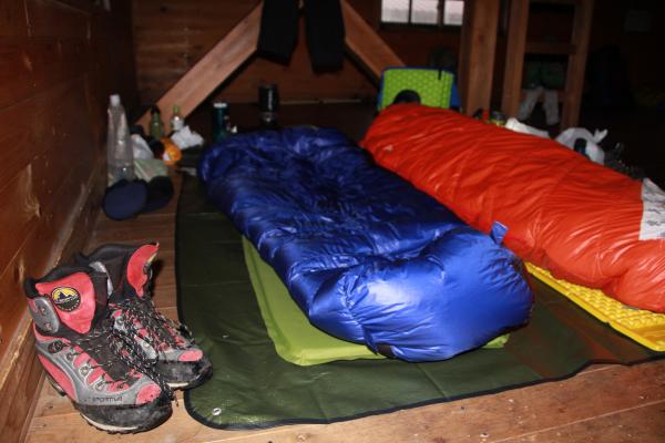 室堂の小屋は冬季向けに二階入口から入れるようになっています。広い為、室内でも夜は冷え込みます。