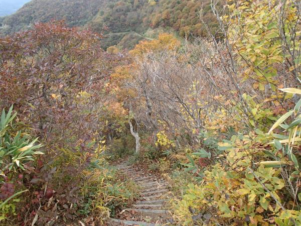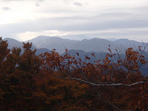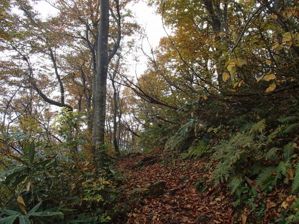 今年は紅葉が早いと言われています。ぼちぼち医王山にも紅葉がきているとお客様に教えていただき、出掛けてみました。スタートからぽつぽつと雨に降られるような生憎の天気ですが奥医王山を目指し歩くことにしました。平日でこの天気のためほぼ貸切、最初の白兀山山頂に近づくにつれ葉っぱが黄色や赤色に色づいています。夕霧峠、奥医王山まで行くとなおさらで、そのあたりから歩いてきた方向を振り返るとなかなかの景色が楽しめます。背景が青空ならもっと映えるんだろうなあと思いつつ、雨に降られる前に山を後にしました。皆様秋山の美しさが、いよいよ低山でも楽しめるようになってきました。是非お出掛けになってみてください。 下山時、落葉の下に隠れている、段差、木の根っこ、石にはくれぐれもお気を付け下さい。
