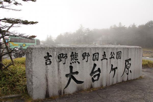ビジターセンターの駐車場は登山客、カメラマン、バイカーで