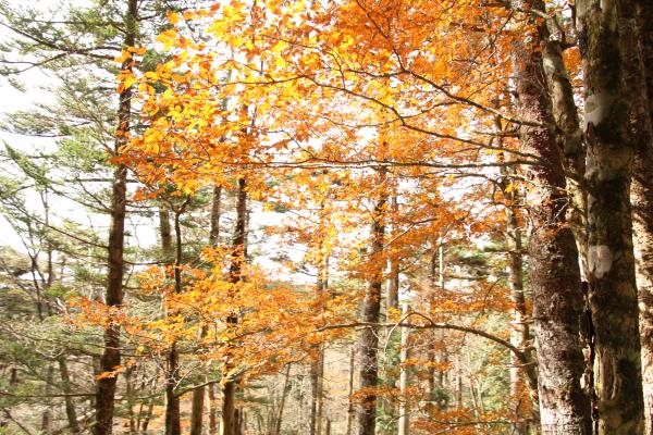 紅葉ですが、山頂は既に枯れていますが、ビジターセンターまでの車の道中が最も綺麗に色付いてました。